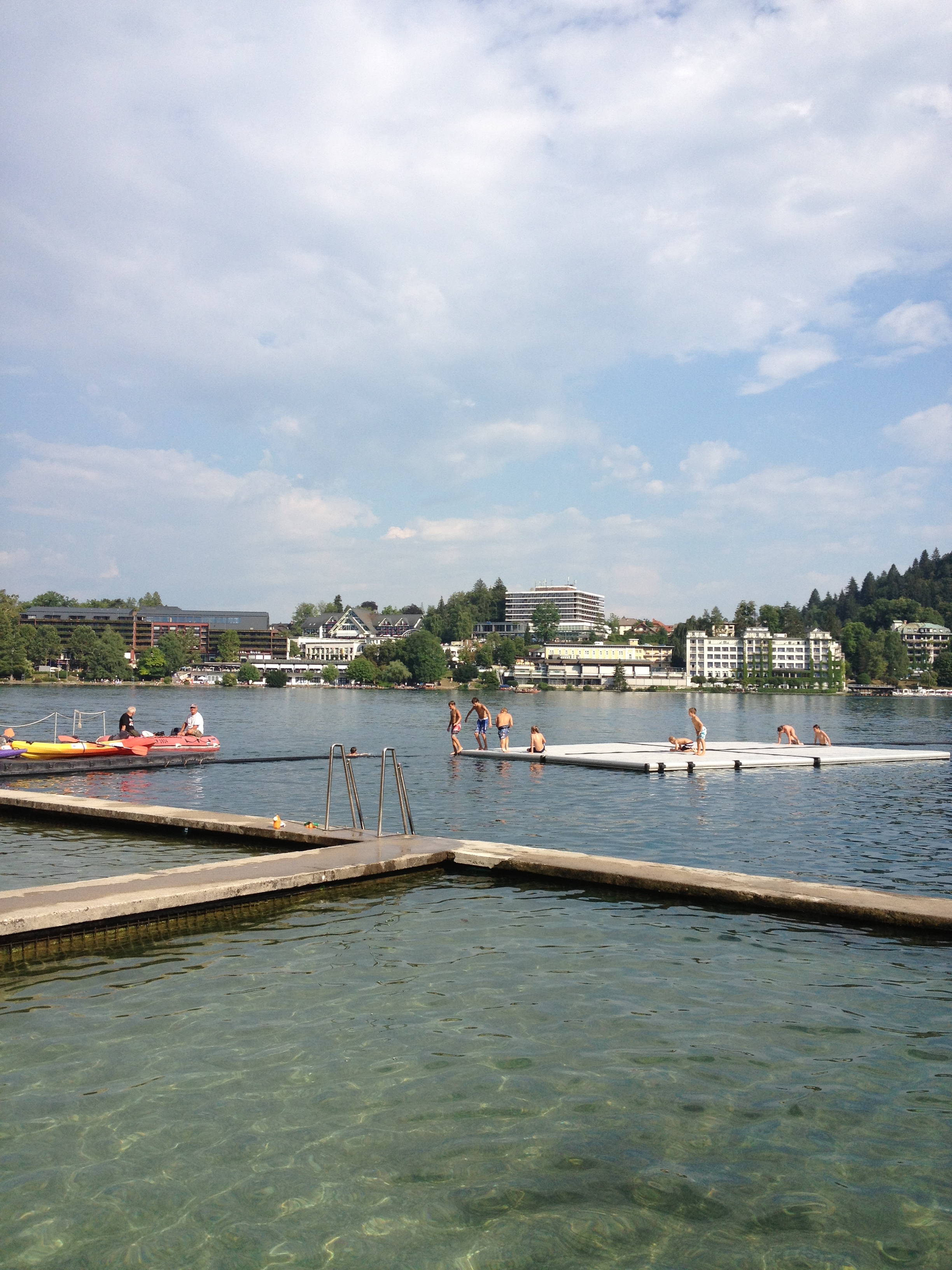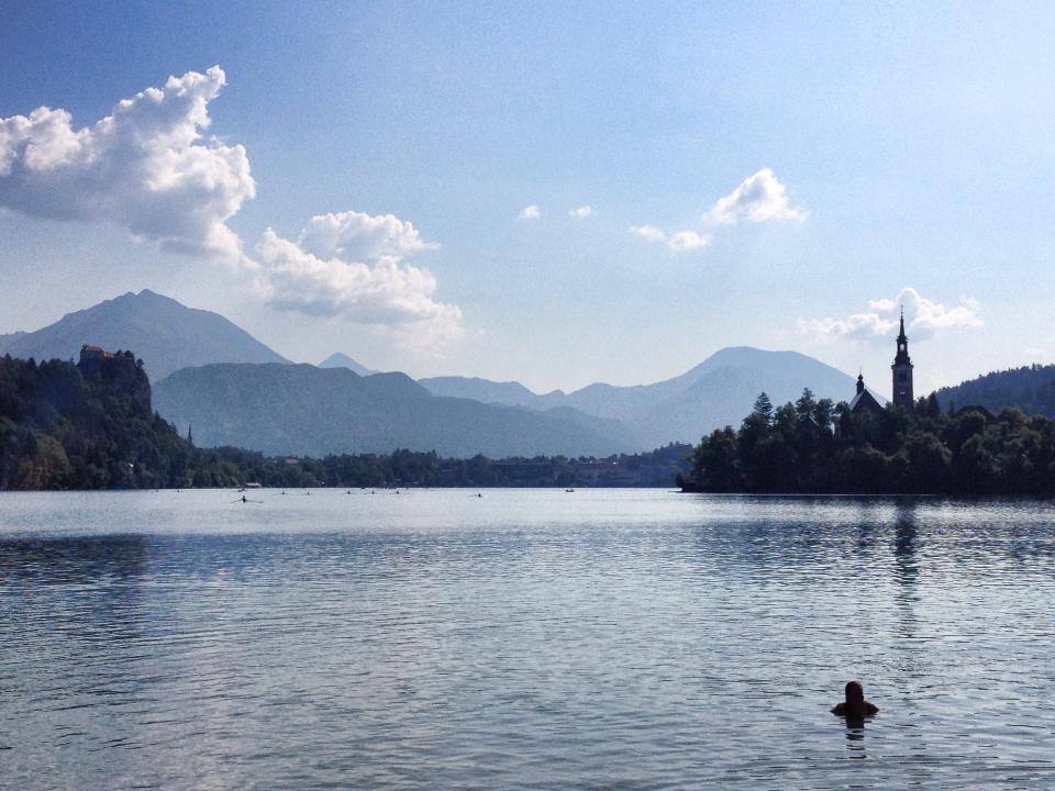 In July 2013 after a quick plane ride to Ljubljana and then a pleasant transfer (where Pivo realising he was with 5 girls spoke to our lovely ex-pat Driver Graeme about football for the entire drive) we arrived at the lake side hotel Strel provides in Lake Bohinj. With a few hours to spare before we met our group, we headed off to the “beach” next to our hotel and did what swimmers do best.. had a paddle/dip/splash. My first thought was it was freezing (it really wasn’t!) but secondly how clean and tranquil it was. This was the lake swimming of dreams. No algae, no boat traffic..just us and a few friendly kayakers.