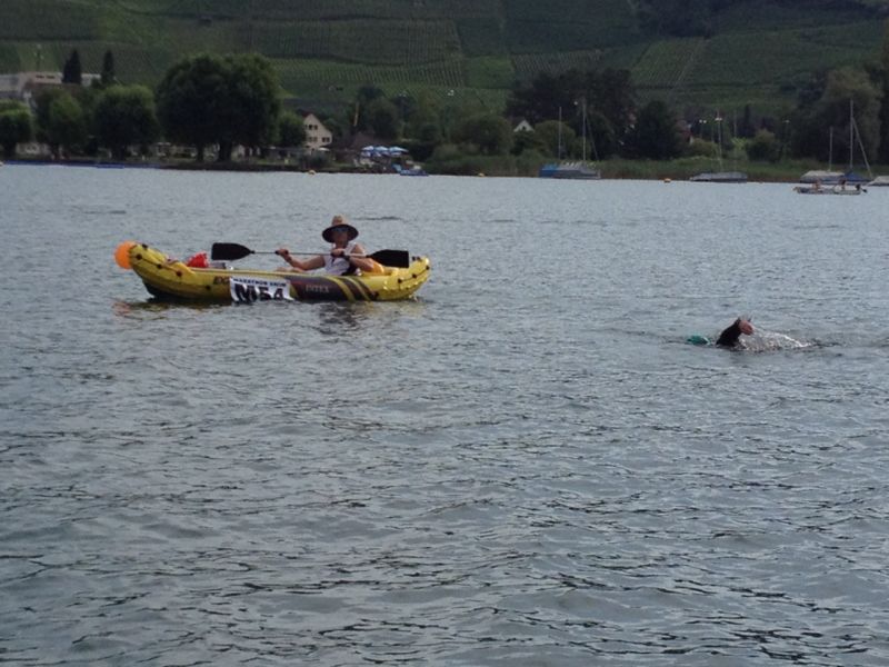 On the day of the race (another early wake-up!) Manda was swimming first so she went down to the start line and I got aboard the support boat. The boat and its three sailors were very nice – unfortunately the sailors didn’t speak any English and I didn’t speak any German so communication was kept to a minimum! Manda has a degree in German and lived there for a year so she managed to chat away with them.