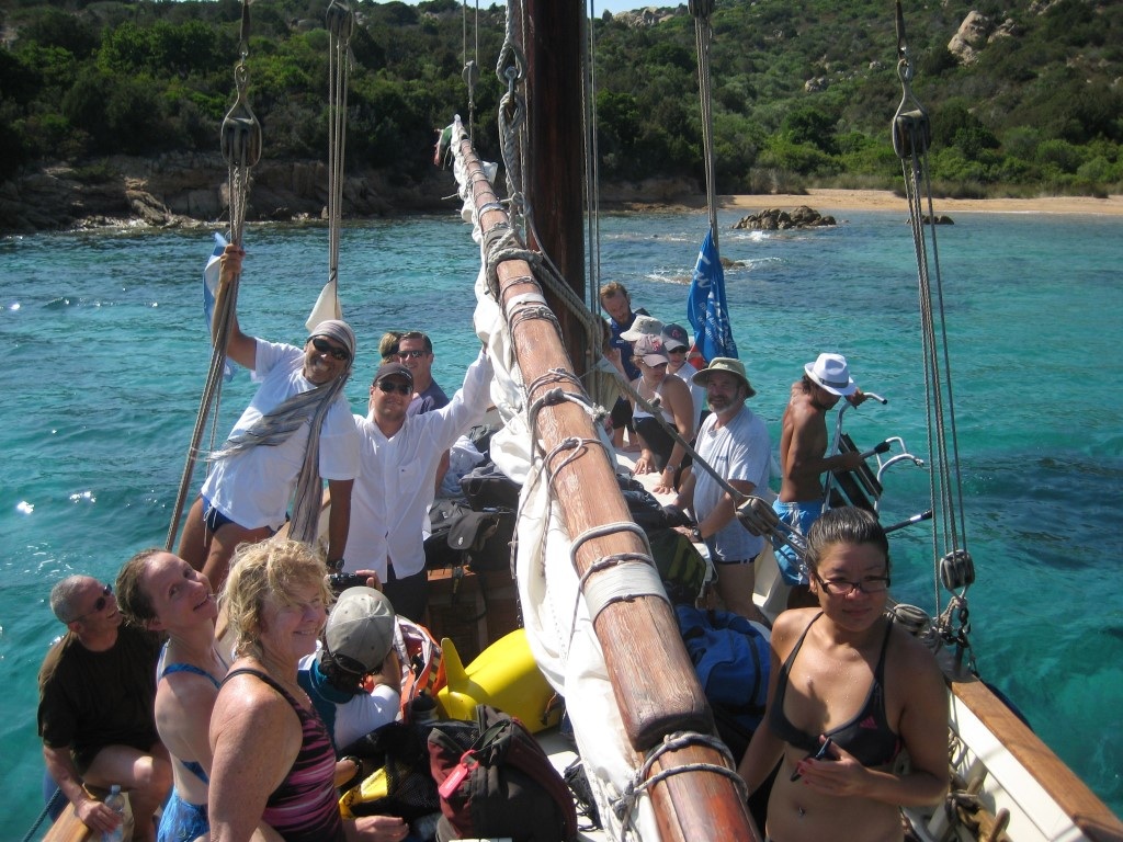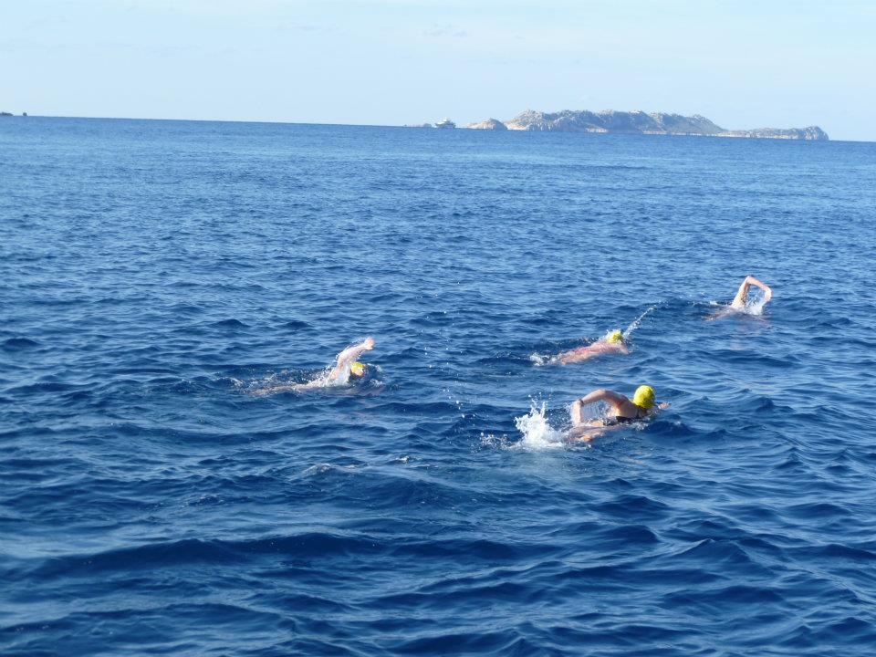 I July 2010 I (Brian) went to the Maddalena Archipelago on the northern coast of Sardinia. All of the swims were within the Maddalena national park, and were in crystal clear waters. Compared to the British Virgin Islands there was a lot more sealife to look at as we were swimming (lots of small fish, and some dolphins following the boat). In total we swum about 26km spread over 6 days. Typically we did two swims a day, with a mix of coastal swims and crossings.